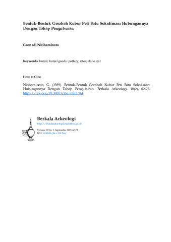 Nitihaminoto, Goenadi (1989) Bentuk-Bentuk Gerabah Kubur Peti Batu Sokoliman: Hubungannya dengan Tahap Penguburan. Berkala Arkeologi, 10 (2): 5. pp. 62-73. ISSN 0216 - 1419