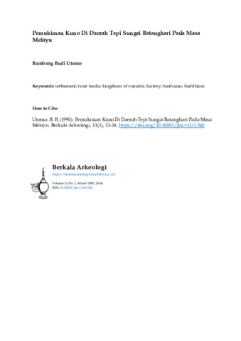 Utomo, Bambang Budi (1990) Pemukiman Kuno di Daerah Tepi Sungai Batanghari pada Masa Melayu. Berkala Arkeologi, 11 (1): 2. pp. 13-26. ISSN 0216 - 1419
