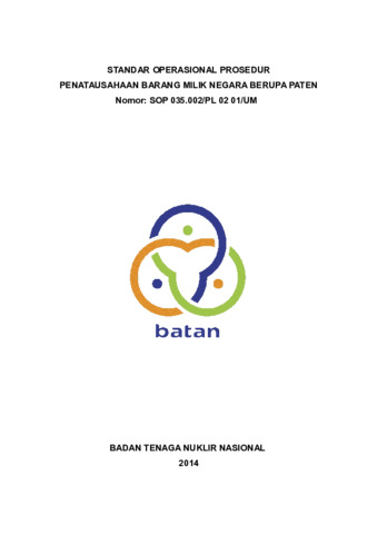 Wardhono, Wardhono and Hermansyah, Dendang and Sutarto, Falconi Margono (2014) SOP Penatausahaan BMN Paten. Documentation. BSDMO BATAN.