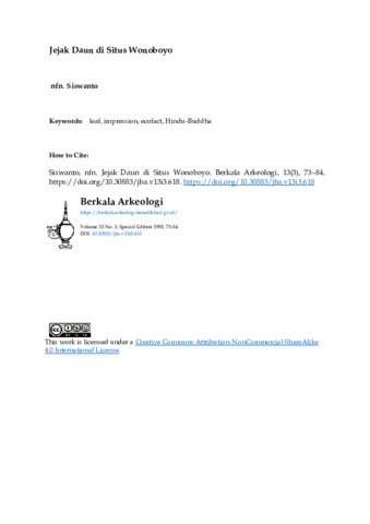 Siswanto, Siswanto (1993) Jejak Daun di Situs Wonoboyo. Berkala Arkeologi, 13 (3): 7. pp. 73-84. ISSN 0216 - 1419