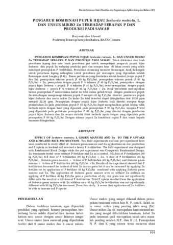 Telah dilakukan dua buah percobaan lapang dan satu buah percobaan pot untuk mempelajari pengaruh pupuk hijau Sesbania dan pupuk Zn terhadap produksi padi dan serapan hara di lahan sawah yang selalu