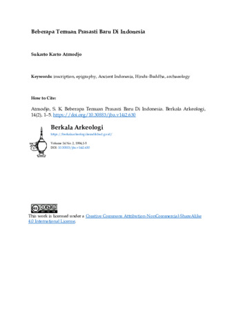 Atmodjo, Sukarto Karto (1994) Beberapa Temuan Prasasti Baru di Indonesia. Berkala Arkeologi, 14 (2): 1. pp. 1-5. ISSN 0216 - 1419
