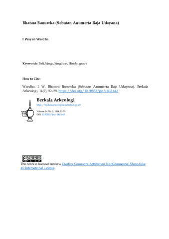 Wardha, I Wayan (1994) Bhatara Banuwka (Sebutan Anumerta Raja Udayana). Berkala Arkeologi, 14 (2): 12. pp. 52-55. ISSN 0216 - 1419