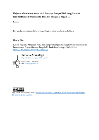 Kusen, Kusen (1994) Raja-raja Mataram Kuna dari Sanjaya Sampai Balitung Sebuah Rekonstruksi BerdasarkanPrasasti Wanua Tengah III. Berkala Arkeologi, 14 (2): 19. pp. 82-94. ISSN 0216 - 1419