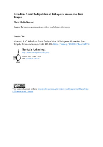 Nawawi, Abdul Choliq N (1994) Kehadiran Sosial Budaya Islam di Kabupaten Wonosobo, JawaTengah. Berkala Arkeologi, 14 (2): 26. pp. 129-137. ISSN 0216 - 1419