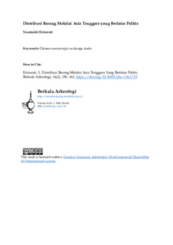 Eriawati, Yusmaini (1994) Distribusi Barang Melalui Asia Tenggara yang Berlatar Politis. Berkala Arkeologi, 14 (2): 29. pp. 156-162. ISSN 0216 - 1419