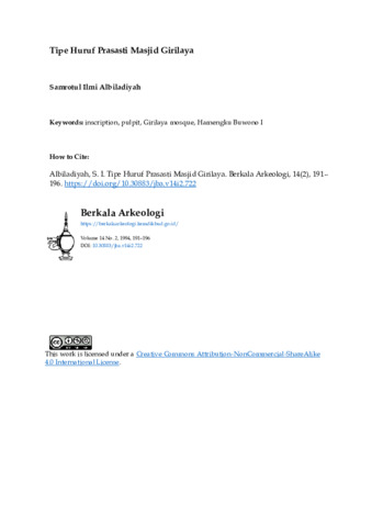 Albiladiyah, Samrotul Ilmi (1994) Tipe Huruf Prasasti Masjid Girilaya. Berkala Arkeologi, 14 (2): 35. pp. 191-196. ISSN 0216 - 1419