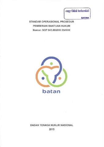 Fuadi, Gumilang and Tjiptosumirat, Totti and Sutarto, Falconi Margono (2015) SOP Pemberian Bantuan Hukum Nomor : SOP 043.002/HK 03/HHK. Documentation. BSDMO BATAN.