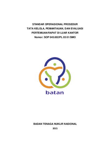Wiyati, Wiwik Sri and Indriana, Mari and Sutarto, Falconi Margono SOP Tata Kelola Rapat di luar Kantor Nomor : SOP 045.002/PL 03 01/SMO. Documentation. BSDMO BATAN.