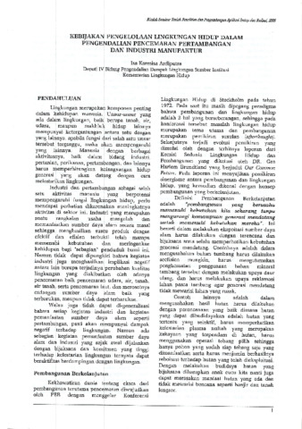 Ardipura, Isa Karmisa (2005) Kebijaksanaan Pengelolaan Lingkungan Hidup dalam Pengendalian Pencemaran Pertambangan Industri Manufaktur. In: Risalah seminar Ilmiah penelitian dan pengembangan Aplikasi Isotop dan Radiasi, 2005., 12 April 2005, jakarta.