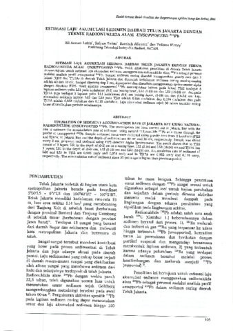 Telah dilakukan penelitian di daerah Teluk Jakarta dengan tujuan estimasi laju akumulasi sedimen menggunakan radionklida alam 210Pb.