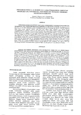 Penelitian produksi gas secara in vitro telah dilakukan untuk mengetahui produksi gas, kecernaan dan sintesis mikroba beberapa silase daun mutan sorghum.