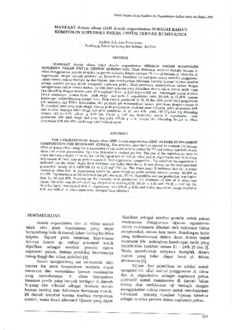 Telah dilakukan evaluasi biologis hijauan A. angustissima menggunakan metode pengukuran protein mikroba dengan perunut 32P dan uji biologis A. vilosa dan A. angustissima dengan metode produksi gas Hohenheim.