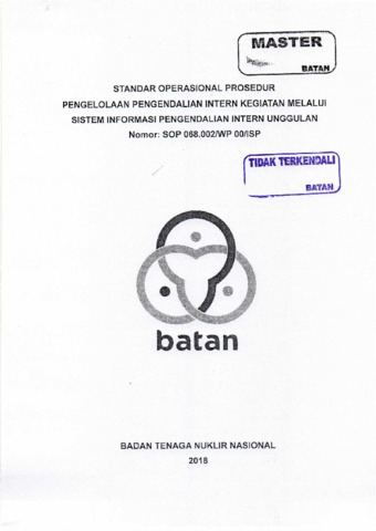Rahardjo, Dwi and Kriswanto, Kriswanto and Sutarto, Falconi Margono (2018) SOP Pengelolaan Pengendalian Intern Kegiatan Melalui Sistem Informasi Pengendalian Intern Unggulan. Documentation. BSDMO BATAN.