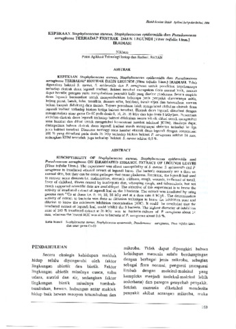 Telah digunakan Bakteri S. aureus, S. epidermidis dan P. aeruginosa untk penelitian kepekaannya terhadap ekstrak daun Legundi iradiasi. Bakteri tersebut merupakan flora normal kulit.