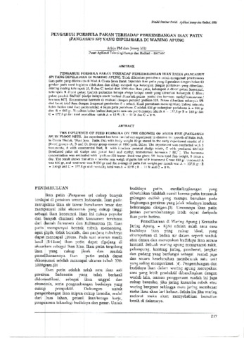 Telah dilakukan percobaan untuk mengomati pembesaran ikan patin yang dilakukan di Waduk Cirata Jawa Barat. Sejumlah ikan patin yang digunakan dengan bobot 80 gr/ekor pada awal keglatan dHakukan dan dibagi menjadi tiga kelompok dengan perlakuan yang diberikan. Masing-masing kelompok (A, B dan C) terdiri dari 1000 ekor ikan patin, kelompok A diberi pakan komersial, kelompok B diberi pakan limbah pertanian berupa sludge kelapa sawit yang diiradlasl kelompok C dlberi pakan produk BATAN (sludge kelapa sawit lradlasi ditambah pakan postal dan hormon methyl testosterone' hormon MT). Konsenterasi hormon di evaluasl dengan perunut yodlum-rzs. Pakan diberikan sebanyak 5% dari berat total ikan dengan frequensi pemberlan 5 x sehari. Hasil percobaan menunjukkan bahwa rata-rata bobot badan total ikon patln setelah 4 bulan pada perlakuan C adalah 810 gr sedangkan perlakuan A ~ 630 sr dan B a 600 gr. Kenalkan bobot badan ikan patin rata-rata per-bulannya adalah A ~ 137,5 gr B - 130 gr dan C - 177,5 gr dan total mortalitas untuk A - 1Z % ; B - 11 % dan C - 8 %