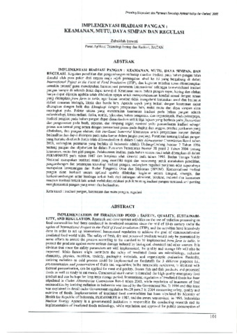 Irawati, Zubaidah (2008) Implementasi Radiasi Pangan : Keamanan, Mutu, Daya Simpan dan Regulasi. In: Prosiding Simposium dan Pameran Teknologi Aplikasi Isotop dan Radiasi, 2008, 5-6 Agustus 2008, Jakarta.