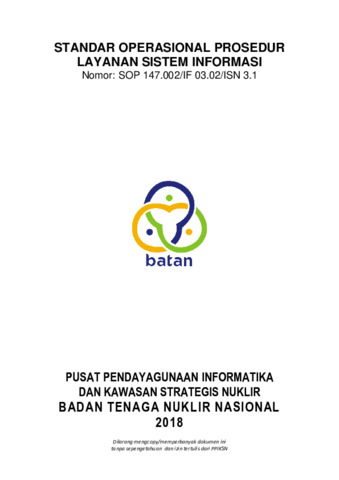 Indrijatmaka, Indrijatmaka (2018) STANDAR OPERASIONAL PROSEDUR LAYANAN SISTEM INFORMASI Nomor: SOP 147.002/IF 03.02/ISN 3.1. Pusat Pendayagunaan Informatika dan Kawasan Strategis Nuklir.