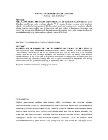 Kata Kunci: Pemeliharaan,Sistim Pendingin Sekunder,Reaktor