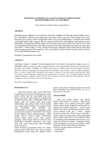 Sumarno, Yulius and Nugroho Luhur, NL and Unggul Hartoyo, UH (2008) PENGENDALIAN BEKERJA DI FASILITAS IRADIASI RABBIT SYSTEM REAKTOR SERBA GUNA GA. SIWABESSY. In: PROSIDING SEMNAR HASIL PENELITIAN P2TRR, PRSG - BATAN.