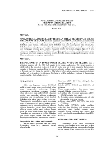 PENGARUH KELUAR MASUK TARGET TERHADAP OPERASI REAKTOR YANG SEDANG BERLANGSUNG DI RSG GAS. Salah satu kegunaan reaktor RSG-GAS adalah sebagai sarana untuk memproduksi bahan radioisotop. Pemasukan dan pengeluaran target pada posisi iradiasi D-6 dan E-7 dilakukan secara manual. Pelaksanaan dapat dilakukan pada saat reaktor padam atau operasi, bila dilakukan disaat reaktor padam maka tidak ada masalah, tetapi bila dilakukan saat reaktor operasi maka akan menganggu jalannya operasi reaktor. Gangguan tersebut merupakan gangguan laju alir di teras reaktor dan gangguan reaktivitas. Penilitian ini bertujuan untuk menentukan perilaku hubungan antara penanganan target dan gangguan parameter tersebut. Perilaku ini akan menjadi pedoman group operasi dalam melaksanakan penanganan target iradiasi.