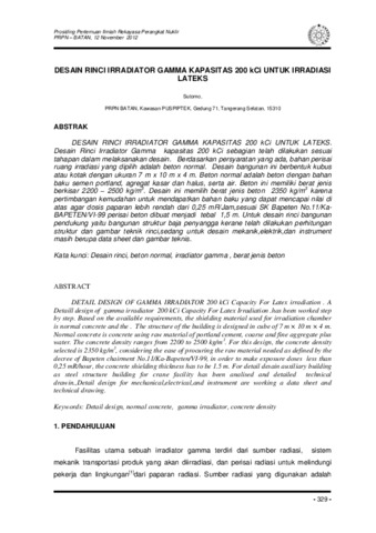 DESAIN RINCI IRRADIATOR GAMMA KAPASITAS 200 kCi UNTUK LATEKS. Desain Rinci Irradiator Gamma kapasitas 200 kCi sebagian telah dilakukan sesuai tahapan dalam melaksanakan desain. Berdasarkan persyaratan yang ada, bahan perisai ruang irradiasi yang dipilih adalah beton normal. Desain bangunan ini berbentuk kubus atau kotak dengan ukuran 7 m x 10 m x 4 m. Beton normal adalah beton dengan bahan baku semen portland, agregat kasar dan halus, serta air. Beton ini memiliki berat jenis berkisar 2200 – 2500 kg/m3. Desain ini memilih berat jenis beton 2350 kg/m3 karena pertimbangan kemudahan untuk mendapatkan bahan baku yang dapat mencapai nilai di atas agar dosis paparan lebih rendah dari 0,25 mR/Jam,sesuai SK Bapeten No.11/Ka-BAPETEN/VI-99 perisai beton dibuat menjadi tebal 1,5 m. Untuk desain rinci bangunan pendukung yaitu bangunan struktur baja penyangga kerane telah dilakukan perhitungan struktur dan gambar teknik rinci,sedang untuk desain mekanik,elektrik,dan instrument masih berupa data sheet dan gambar teknis.