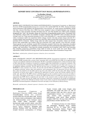Rusdian Akhmad, Yus (2017) KONSEP DOSE CONSTRAINT DAN MASALAH PENERAPANNYA. Seminar Nasional Teknologi Pengelolaan Limbah XV tahun 2017. ISSN 1410-6086