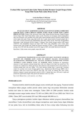 Evaluasi Sifat Agronomi Galur-Galur Mutan Kedelai Berumur Genjah Dengan Sistim Tanpa Olah Tanah Pada Bekas Lahan sawah. Penelitian ini bertujuan untuk mendapatkan