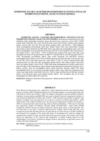 Waluyo, Setiyo Hadi (2010) KOMPETISI ANTARA 2 BAKTERI BRADYRHIZOBIUM JAPONICUM DALAM PEMBENTUKAN BINTIL AKAR TANAMAN KEDELE. In: Prosiding Simposium dan Pameran Teknologi Aplikasi Isotop dan Radiasi, 27-28 Otober 2010, 27-28 Oktober 2010, Jakarta.