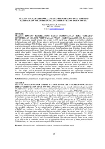 berkaitan dengan iptek nuklir. Tujuan kajian ini adalah untuk mengetahui tingkat keterpakaian koleksi yang
