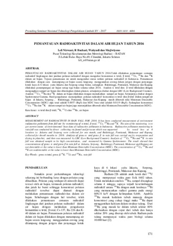 dalam air hujan. Tujuan pemantauan ini untuk mengetahui status terkini polutan radioaktif di Indonesia. Pemantauan