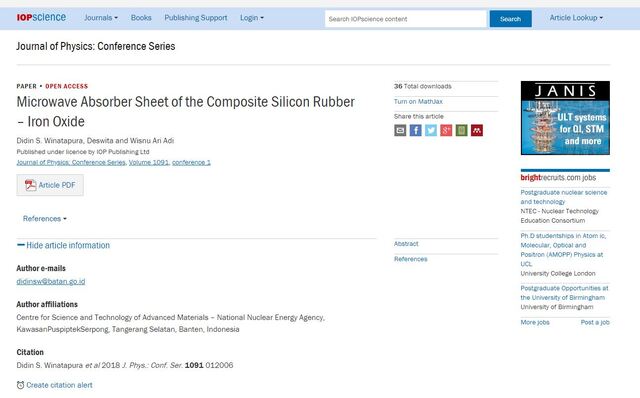 | Divisions: | BATAN > Pusat Sains dan Teknologi Bahan Maju IPTEK > BATAN > Pusat Sains dan Teknologi Bahan Maju |