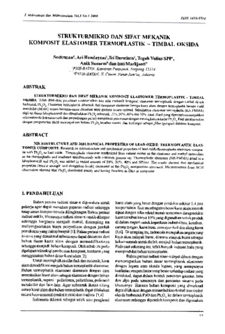 Sudirman, Sudirman and Handayanil, Ari and Darwinto, Tri and Yulius, Teguh and Sunarni, Anik and Marlijanti, Isni (2000) STRUKTUR MIKRO DAN SIFAT MEKANIK KOMPOSIT ELASTOMER TERMOPLASTIK -TIMBAL OKSIDA. .l Mikroskopi don Mikroanalisis, 3 (1). pp. 17-20. ISSN 1410-5594