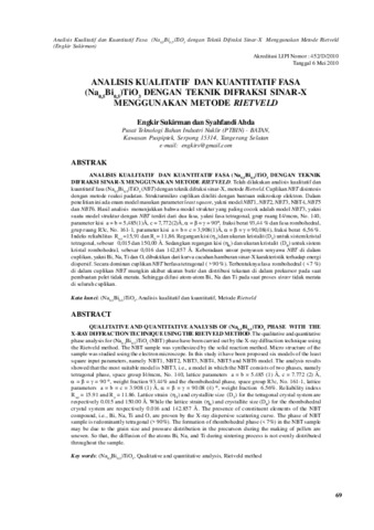 Sukirman, Engkir and Ahda, Syahfandi (2011) Qualitative and Quantitative Analysis of (Na0.5bi0.5)tio3 Phase with the X-ray Diffraction Technique Using the Rietveld Method. Jurnal Sains Materi Indonesia, 13 (1). pp. 69-74. ISSN 1411-1098