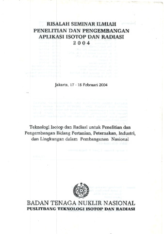 | Subjects: | Taksonomi BATAN > Isotop dan Radiasi > Pemanfaatan Isotop dan Radiasi > Bidang Pertanian |