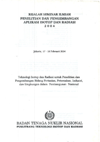 | Subjects: | Taksonomi BATAN > Isotop dan Radiasi Taksonomi BATAN > Isotop dan Radiasi > Pemanfaatan Isotop dan Radiasi > Bidang Pertanian Taksonomi BATAN > Isotop dan Radiasi > Pemanfaatan Isotop dan Radiasi |