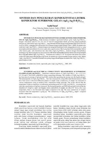 SINTESIS DAN PENGUKURAN KONDUKTIVITAS LISTRIK KONDUKTOR SUPERIONIK GELAS (AGI)X(AG2O-B2O3)1-X.pdf - Published Version