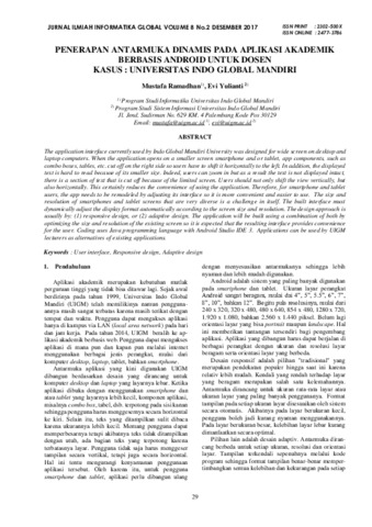 Ramadhan, Mustafa and Yulianti, Evi (2017) PENERAPAN ANTARMUKA DINAMIS PADA APLIKASI AKADEMIK BERBASIS ANDROID UNTUK DOSEN KASUS : UNIVERSITAS INDO GLOBAL MANDIRI. JURNAL ILMIAH INFORMATIKA GLOBAL, 8 (2). pp. 29-36.
