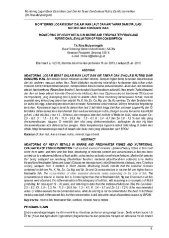 MONITORING LOGAM BERAT DALAM IKAN LAUT DAN AIR TAWAR DAN EVALUASI NUTRISI DARI KONSUMSI IKAN.pdf - Published Version