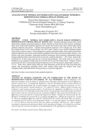 ANALISIS UNSUR MINERAL DAN KORELASINYA DALAM DARAH PENDERITA HIPERTENSI DAN NORMAL DENGAN TEKNIK AAN.pdf - Published Version