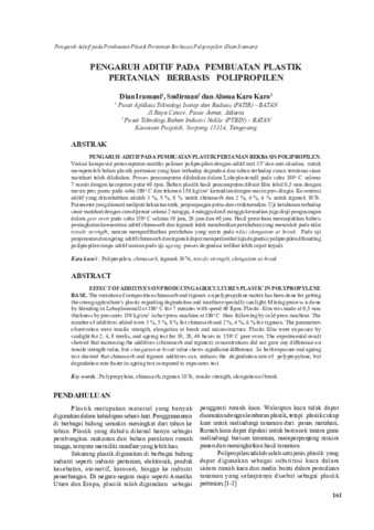 Karo Karo, Aloma and Sudirman, Sudirman (2007) Pengaruh Aditif pada Pembuatan Plastik Pertanian Berbasis Polipropilen. Jurnal Sains Materi Indonesia, 8 (2). pp. 161-166. ISSN 1411-1098