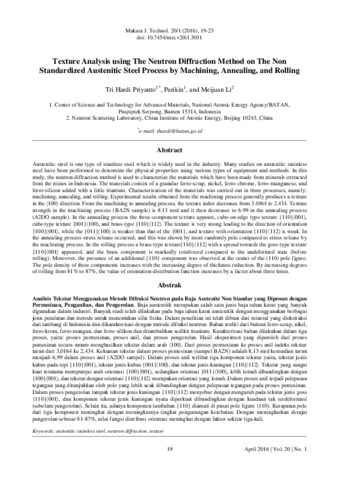 Priyanto, Tri Hardi and Parikin, Parikin and Li, Meijuan (2016) Texture Analysis using The Neutron Diffraction Method on The Non Standardized Austenitic Steel Process by Machining,Annealing, and Rolling. Makara Journal of Technology, 20 (1). p. 19. ISSN 2355-2786