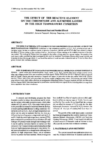 Dani, Mohammad and Effendi, Nurdin (2000) HE EFFECT OF THE REACTIVE ELEMENT ON THE CHROMOXIDE AND ALUM IN IDE LAYERS IN THE HIGH TEMPERATURE CONDITION. Jurnal Mikroskopi dan Mikroanalisis, 3 (1). ISSN 1410-5594