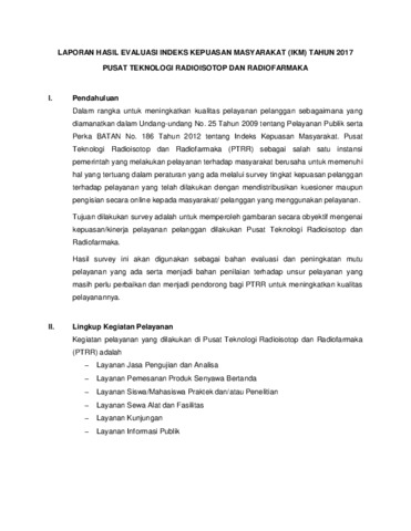 PTRR, PTRR (2017) Laporan Indeks Kepuasan Masyarakat (IKM) Pusat Teknologi Radioisotop dan Radiofarmaka (PTRR) Tahun 2017. Documentation. Pusat Teknologi Radioisotop dan Radiofarmaka (PTRR), Tangerang Selatan.