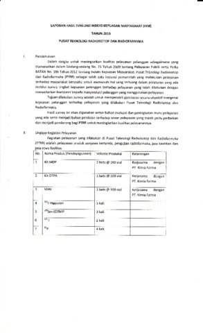 PTRR, PTRR (2015) Laporan Indeks Kepuasan Masyarakat (IKM) Pusat Teknologi Radioisotop dan Radiofarmaka (PTRR) Tahun 2015. Documentation. Pusat Teknologi Radioisotop dan Radiofarmaka (PTRR), Tangerang Selatan.