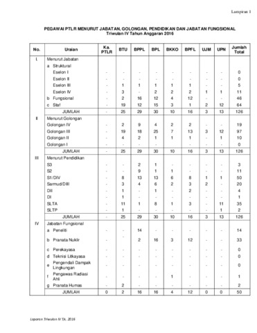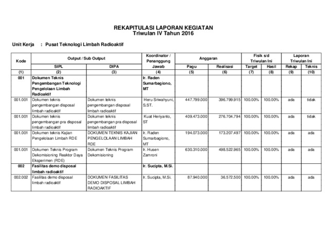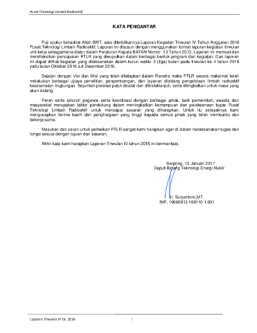 BATAN, PTLR (2016) LAPORAN KEGIATAN TRIWULAN IV TAHUN 2016. Documentation. Pusat Teknologi Limbah Radioaktif.