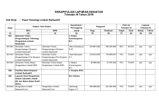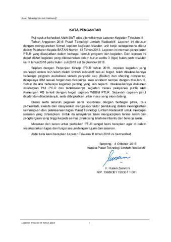BATAN, PTLR (2018) LAPORAN KEGIATAN TRIWULAN III TAHUN 2018. Documentation. Pusat Teknologi Limbah Radioaktif.