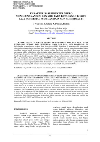wahyono, Imam and Salam, R and Dimyati, Arbi and Parikin, Parikin (2015) KARAKTERISASI STRUKTUR MIKRO MENGGUNAKAN SEM DAN XRD PADA KETAHANAN KOROSI BAJA KOMERSIAL SS430 DAN BAJA NON KOMERSIAL F1. In: SEMINAR NASIONAL XI SDM TEKNOLOGI NUKLIR, 15 SEPTEMBER 2015, Yogyakarta.