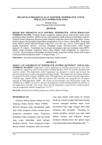 Salam, Rohmad (2013) DESAIN DAN PERAKITAN ALAT KONTROL TEMPERATUR UNTUK PERALATAN NITRIDASI PLASMA. Sigma Epsilon, 17 (3). pp. 114-121. ISSN 0853-9103
