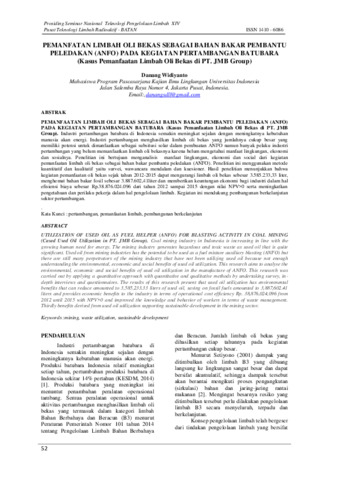 pemanfaatan limbah oli bekas sebagai bahan bakar pembantu peledakan (ANFO). Penelitian ini menggunakan metode